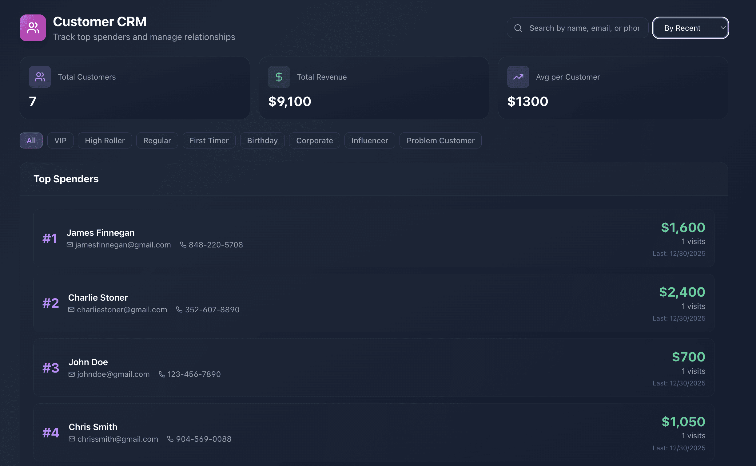 Unique dashboards for managers, staff and customers so each user gets an experience tailored to their needs.