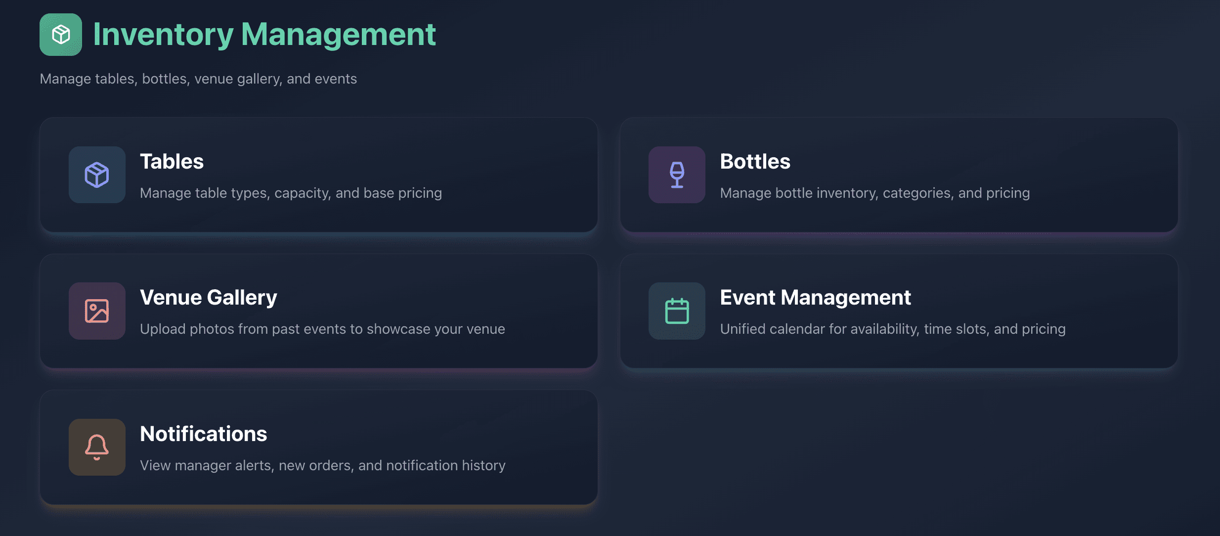 Managers are able to change any information on the site, like photos, videos, pricing, and special events.